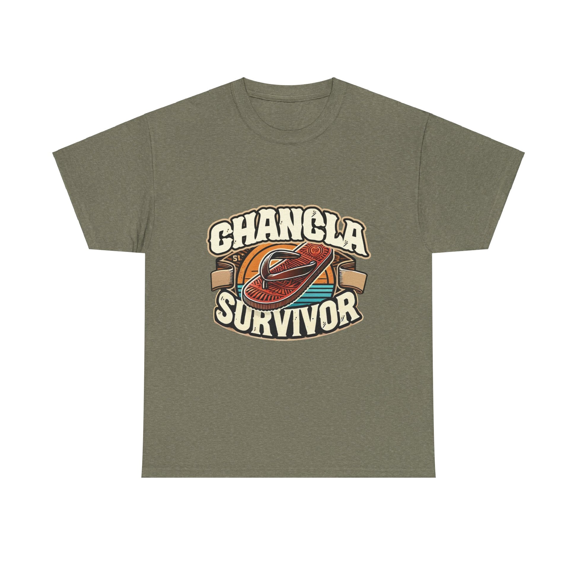 Chancla Survivor T-Shirt – Funny Mexican T-Shirt Sayings, Bold Statement Unisex Heavy Cotton Tee