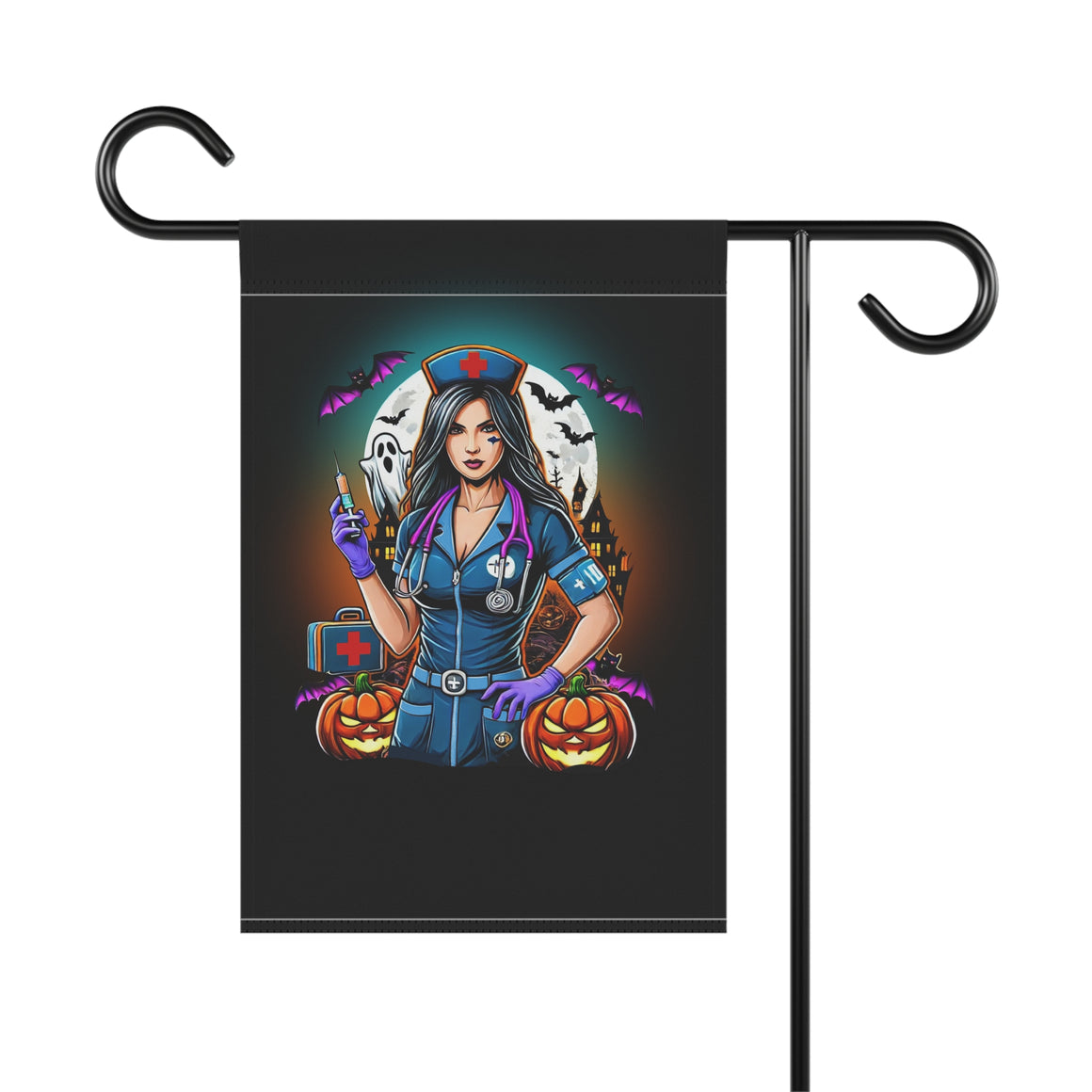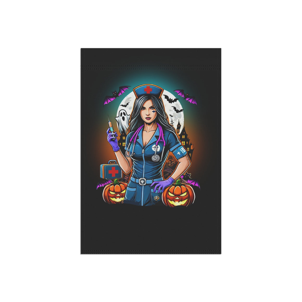 The vibrant design, inspired by a trendy nurse-themed aesthetic, is printed in crisp detail and vivid color on both sides, ensuring it looks fantastic from any angle. The black inside lining adds a sleek finish, enhancing the overall look. Whether you're decorating for Halloween or simply want to showcase your style, this banner is a must-have addition to your outdoor decor collection.