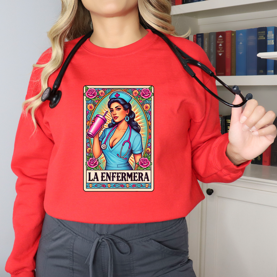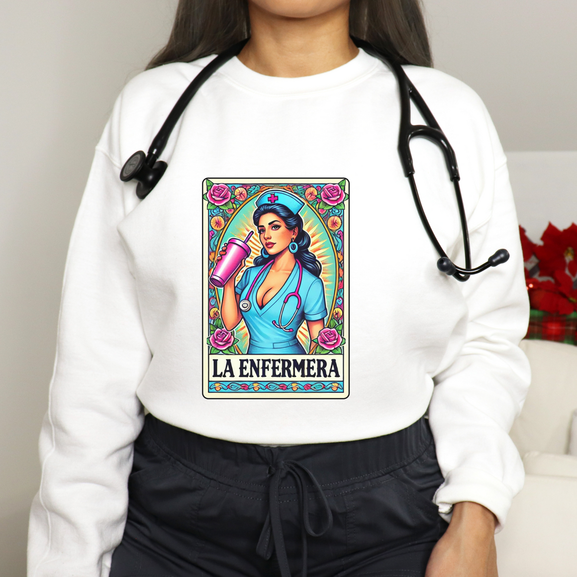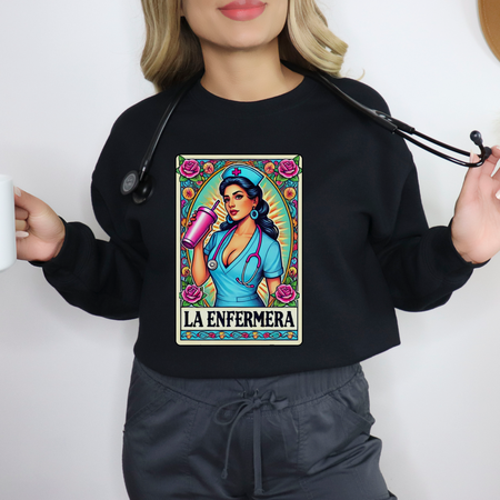Elevate your wardrobe with "La Enfermera" and showcase your pride and passion in a way that’s both stylish and meaningful. This sweatshirt is not just a piece of clothing; it's a statement of empowerment and cultural appreciation.