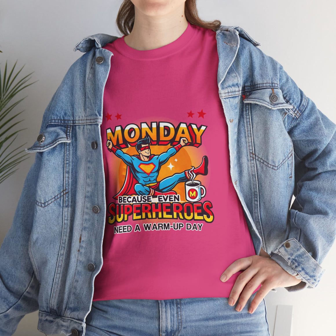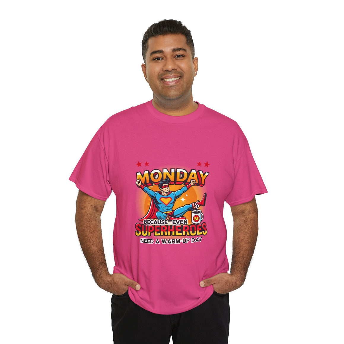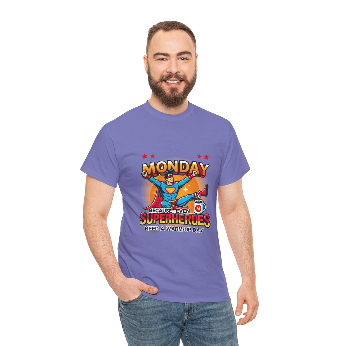 Our premium Monday Superhero T-Shirt – Fun & Motivational Tee for Your Week Unisex Heavy Cotton Tee offers unmatched protection and style