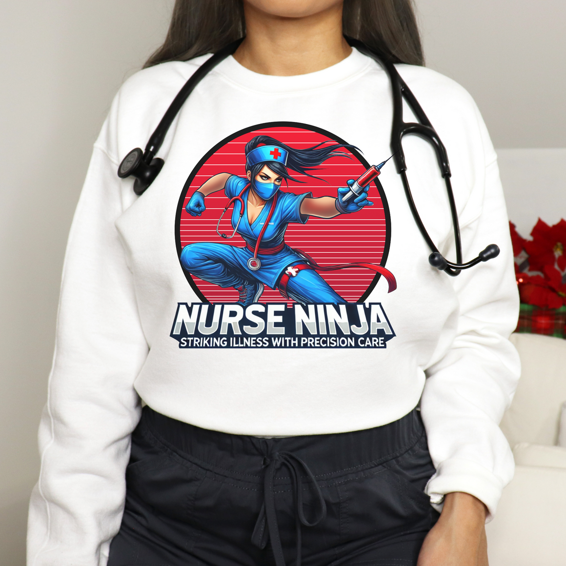 Whether you're on the front lines or enjoying your day off, the Nurse Ninja Crewneck Sweatshirt is the perfect way to showcase your strength and dedication. Order yours today and join the ranks of healthcare's elite!